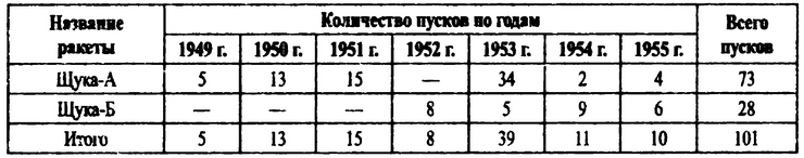 Испытания ракет «Щука-А» и «Щука-Б» в 1949—1955 гг.