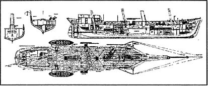 [Закрыть]пушку № 1 на поворотной платформе, что позволяло вести огонь на оба борта, и две 24-фунтовые пушко-карронады. [22]22