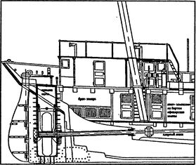 Уже в ходе строительства клиперов в их конструкцию было внесено серьезное изменение – гребной винт решили делать подъемным. Дело в том, что на пароходах гребные колеса и винты создавали сильное сопротивление воды при движении под парусами. Чтобы увеличить ход под парусами, было решено отсоединять гребной винт от вала и поднимать в так называемый «винтовой колодец». Замечу, что военным судам, не имевшим винтового колодца, приходилось, идя под парусами, не гасить топки, а медленно прокручивать винты, чтобы уменьшить сопротивление воды.
