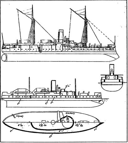 В 70-х годах XIX века было построено 17 шлюпов – небольших (водоизмещением 1124–1420 т) трехмачтовых паровых судов со скоростью 12–13 узлов и вооруженных 6–8 орудиями калибра 152–127 мм. Броневой защиты шлюпы не имели.