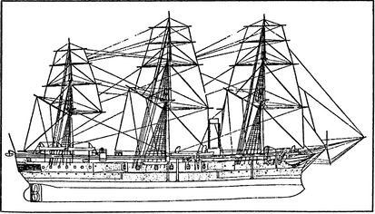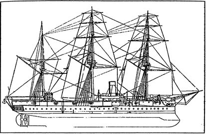 Так, небронированный железный фрегат «Инконстант», построенный в 1868 г., имел водоизмещение 5780 т, длину 102,8 м, ширину 15,3 м и осадку 7,8 м. На мерной миле он показал скорость 16,2 узла, фактически же скорость была меньше. При запасе угля 750 т расчетная дальность плавания составляла 2600 миль. Вооружение состояло из девяти 229-мм и шести 178-мм дульнозарядных нарезных пушек.