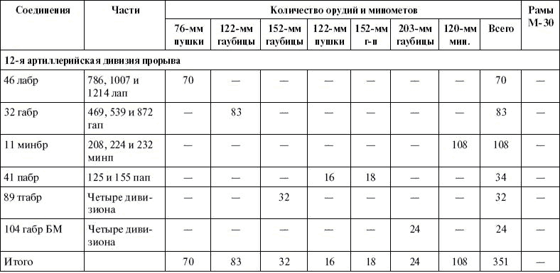 Таблица 14. Боевой состав 4-го артиллерийского корпуса прорыва на 4 июля 1943 г. [92]92