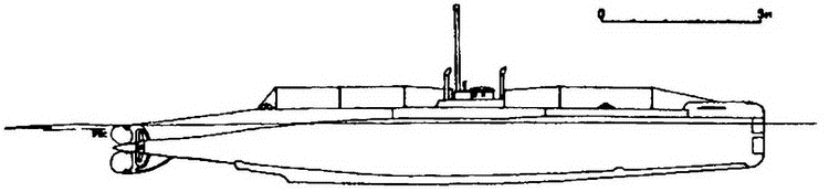 Надводное водоизмещение лодки составляло всего 33,1 т, а подводное – 43,6 т. Скорость надводного хода – 8 узлов, подводного – 6 узлов. Вооружение состояло из двух трубчатых 457-мм торпедных аппаратов, размещенных в носовой части корпуса.