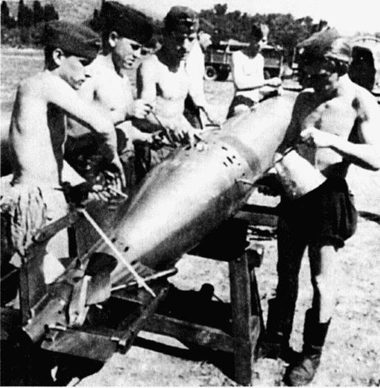 Подготовка торпеды к подвеске к самолету Не-111