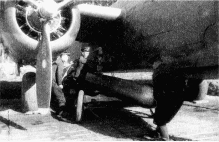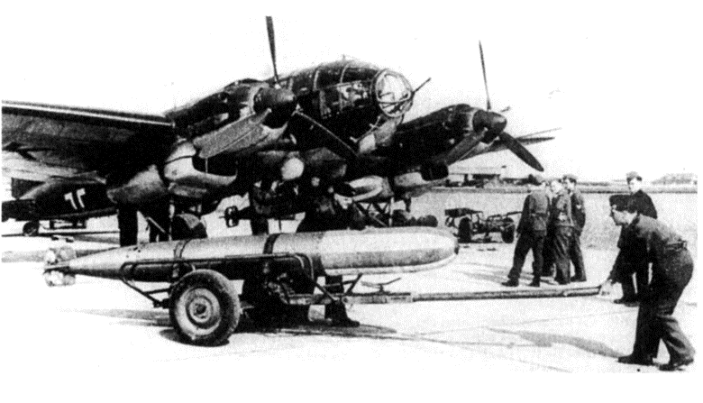Подвеска торпеды к самолету Не-111. 1942 г.