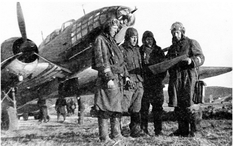 Летчики-торпедоносцы Северного флота у самолета Ил-4Т. 1942 г. (фото из архива П.Б. Липатова)