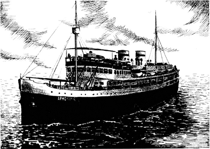 Грузопассажирский теплоход «Армения», потопленный германским торпедоносцем Не-111 7 ноября 1941 г.