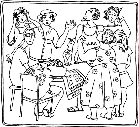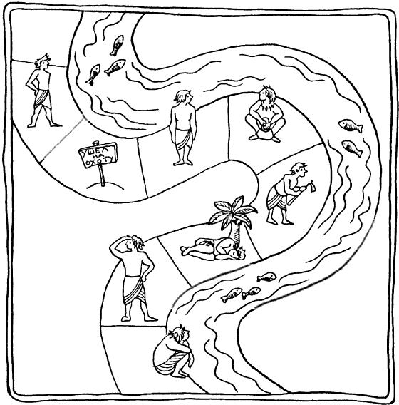 Этот случай убийства очень резко обострил вопросы специализации и создания профессий. В городе невозможно заниматься всем сразу. Кроме того, возникали проблемы, которое общество должно было решать вместе. Я думаю, самые первые собрания жителей поселения напоминали собрание дачного кооператива. Первый вопрос, который встал, – это куда девать нечистоты и мусор, как обустроить отхожие места. Дело в том, что в райской равнине эта проблема не возникала. Кал и моча под кустом были удобрениями для буша, кости и объедки растаскивали падальщики, огрызки растений с удовольствием доедали муравьи и другие насекомые. В дачном поселке все не так. На даче всем интересен только свой участок, а работать на общее благо никому не хочется. И тогда приходится выбирать председателя кооператива, на которого надо свалить все общие заботы [рис. 34]. Скорее всего, и в серебряном веке все было точно так же. Жители были готовы поделиться едой, только чтобы не заниматься благоустройством поселка. Несчастный, призванный следить за мусором, нечистотами и отхожими местами, вдруг осознает, что такое власть над людьми. Потом оказывается, что всех можно заставить самих убираться за собой, а в функции начальства входит только контроль и потребление. Делать этому человеку ничего не надо, его и так кормят. Всем не жалко отдать понемногу.