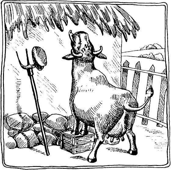 Рис. 39. Корова пытается есть соломенную крышу