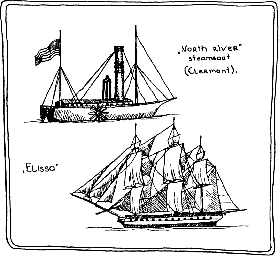 Рис. 46. Парусник и первый пароход