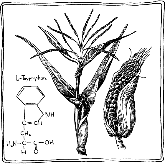 Рис. 59. Растение кукуруза и химическая формула триптофана