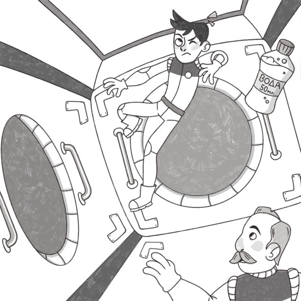 – Ты не болтай давай, а аккуратно забирай свои вещи из шкафчика и продвигайся к люку в корабль, вон туда вон, – Сенькин папа рукой показывает. – И ты, Сеня, от друга не отставай. А если чуточку, тогда скажи, если ты на весы встанешь у себя в каюте, какую цифру они покажут?