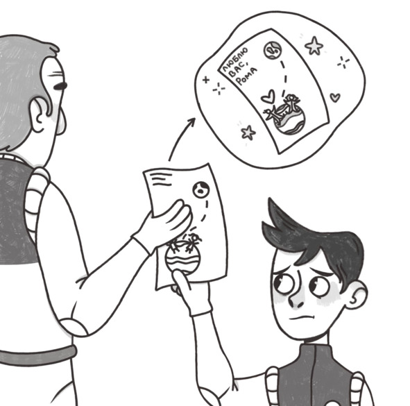Я сразу сообразил, что надо именно рисунок. Потому что ничего другого с корабля я отправить для мамы с папой не сумею. Гайку какую разве на сувенир открутить? Так бортинженер не разрешит – «не положено», хоть ты тресни.