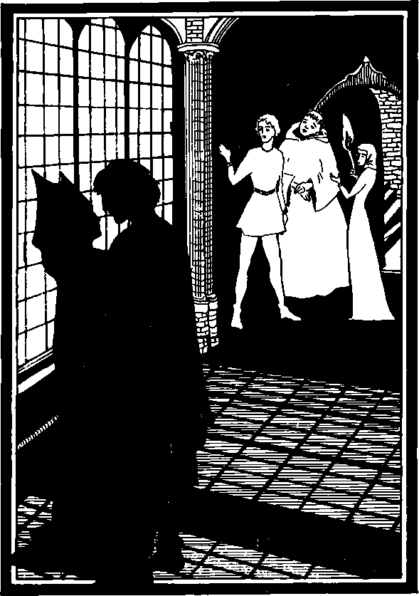 В это время дверь, через которую пленники вошли в часовню, тихо приоткрылась и в часовне появилась с факелом в руке Мод в сопровождении брата Тука без рясы.