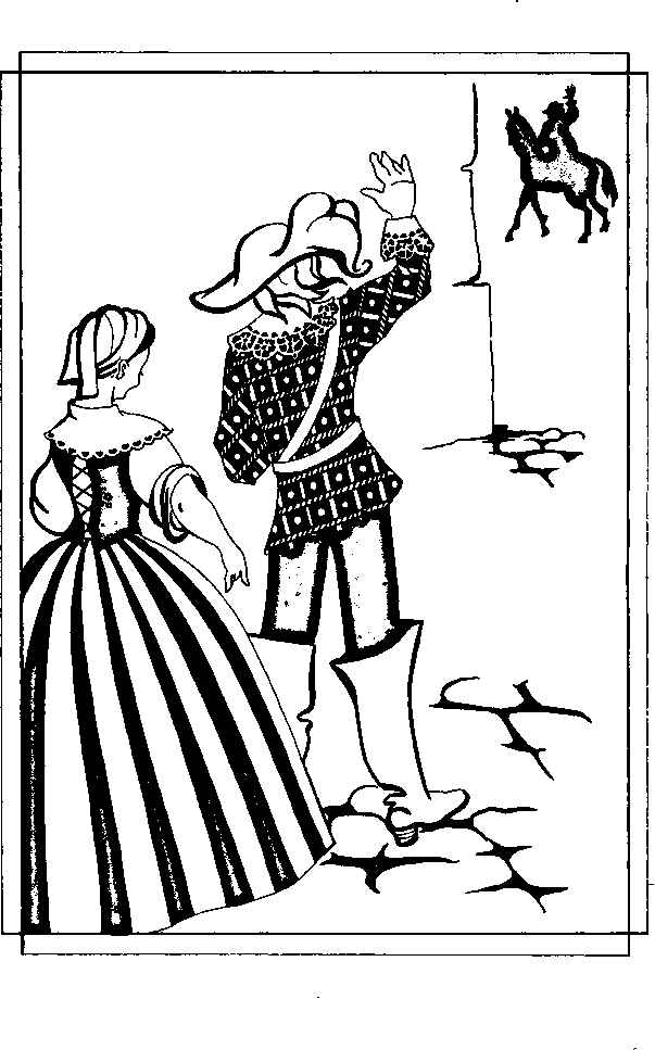 Малочисленные и кое-как выстроившиеся мушкетеры не могли управлять как следует лошадьми, и многие из них были смяты. Д’Артаньян хотел опустить занавески кареты, но молодой король вытянул руку со словами: