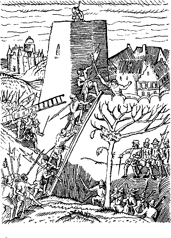 Какой-то человек из лагеря неприятеля, до зубов вооруженный, уже занес ногу над стеной.