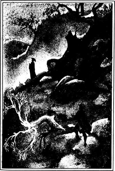 Он сошел с тропы и спрятался за скалой, чтобы узнать, кто эти люди, рискнувшие отправиться ночью в подобное место.