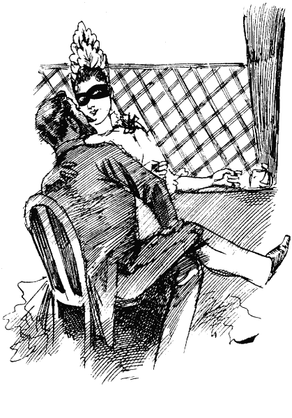 Она повела меня в зал. Раза три мы обошли его по кругу, пробираясь с большим трудом через толпу масок, тесно следовавших одна за другой. Остановились мы у одной из стен. Незнакомка в изнеможении упала на скамью. Я остался стоять возле нее, оперевшись рукой на спинку сиденья.