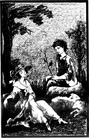 В нескольких шагах от лодки какой-то мужчина, присев на скамеечку, рисовал с натуры валлийскую крестьянку, державшую на руках ребенка. Молодая женщина, стоявшая рядом с ним, через его плечо наблюдала за тем, как продвигается работа.