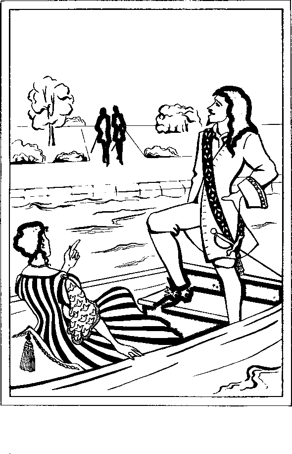 Принцесса смотрела на берег, на траву, на цветы, отвернувшись от придворных. Вдруг она увидела издали д’Артаньяна и Парри.