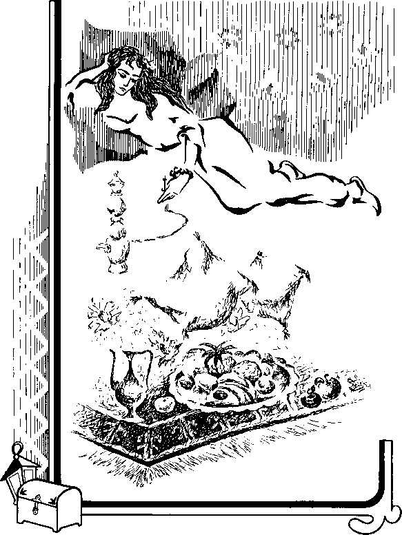 Молодая девушка находилась в самой дальней из своих комнат, то есть в круглом будуаре, куда дневной свет проникал только сверху, сквозь розовые стекла. Она лежала на полу, на подушках из голубого атласа, затканных серебром, легко прислонившись спиной к дивану; закинув за голову мягким изгибом правую руку, левой она подносила к губам коралловый мундштук с прикрепленной к нему гибкой трубкой кальяна, чтобы табачный дым попадал в рот только пропитанный бензоевой водой, через которую его заставляло проходить ее нежное дыхание.
