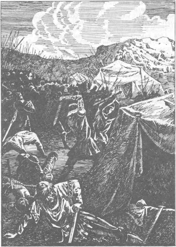 Шагов через пятьдесят его встретили другие воины, которым он дал такие же объяснения; но на сей раз он не был столь удачлив: его привели к командиру ночного дозора, задержавшего гонца в ожидании пробуждения рыцарей.