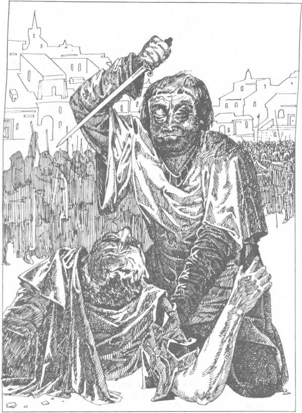 Тогда ткач, склонившись к умирающему, по рукоятку всадил ему в горло нож, и Якоб умер, даже не вскрикнув.