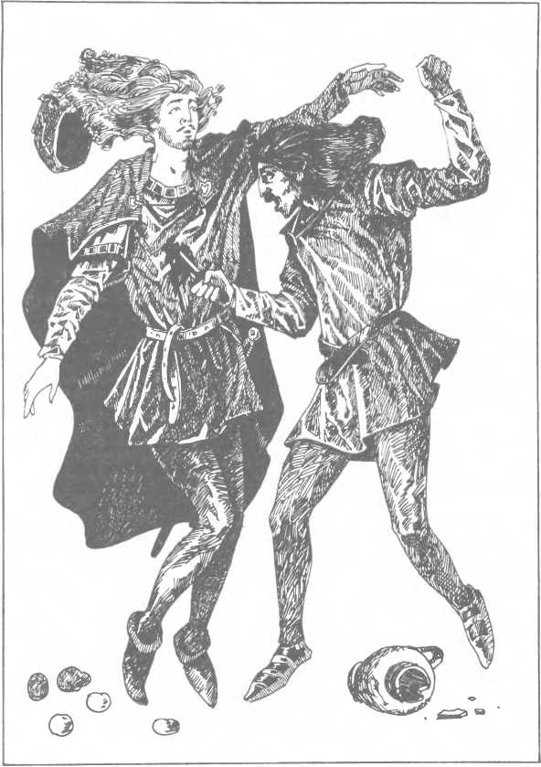 Спустя года три после смерти Уоллеса, вечером, после одной из ежедневных схваток, которые продолжали вести побежденные и победители, несколько английских солдат ужинали, сидя за общим столом трактира; шотландский дворянин, служивший в армии Эдуарда и сражавшийся против мятежников, вошел в зал настолько проголодавшимся, что, сев за отдельный столик и заказав себе ужин, начал есть, не вымыв рук, еще красных от дневной бойни. Английские дворяне, уже отужинавшие, смотрели на него с той ненавистью, что всегда разделяла людей двух народов, хотя служили они под одними знаменами; чужак, спешивший насытиться, не обращал на них никакого внимания, когда один из англичан очень громко заметил: