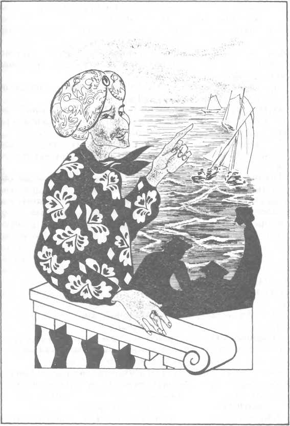 Малайский разбойник перешагнул через парапет набережной, схватился за трос, к которому крепился буек в открытом море, и, дождавшись, пока лодка пройдет прямо под ним, отпустил трос и оказался среди гребцов, которые тотчас же направились в сторону судна.