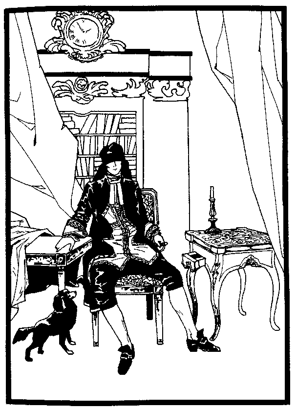 Он оказался один в самом чудесном будуаре, какой только можно вообразить: это была маленькая восьмиугольная комната, в которой все стены были обтянуты л иловато-серебристым китайским шелком, со штофной мебелью и портьерами; восхитительные столики и этажерки работы Буля были сплошь уставлены великолепными китайскими безделушками, пол покрыт персидским ковром, а потолок расписан Ватто, который становился в то время модным художником. При виде этого будуара шевалье едва мог поверить, что его позвали по важному делу, и чуть не вернулся к своим первоначальным предположениям.