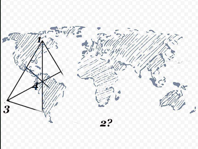 – Правильно. Смотрим дальше. Точки 1 и 4 обозначающие углы у нас есть, центр тоже есть. Наложить на карту получившийся треугольник мы может так?