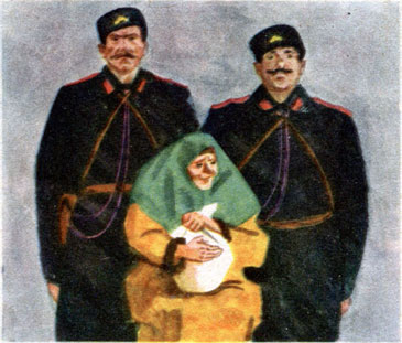 …Дни текли хмурые, тоскливые. Просыпался Калинин раньше всех. Пилил и колол дрова во дворе за домом. В одно такое утро к дому подошли трое молодых солдат в коротких шинелях и суконных картузах.