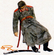 – Что-то шумно здесь, господа! – войдя и озираясь, сказал полицейский и, приставив сапог к сапогу, сердито звякнул шпорами.