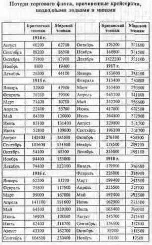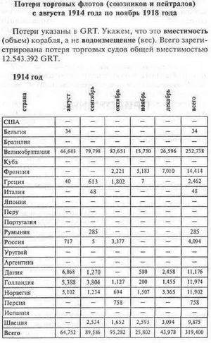 Потери торговых флотов (союзников и нейтралов) с августа 1914 по ноябрь 1918 года