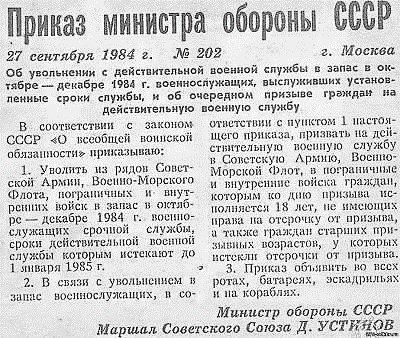 «Мои» Приказы. Призван 30 октября, уволен 28 ноября. Мне повезло, в Афганистане многие переслуживали три, а то и четыре месяца. Земляк Виктор Ефременко одного призыва со мной в феврале только в запас был уволен (из личного архива Александра Филиппова)