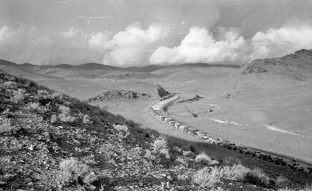 "Инструктаж, приказ на марш и тронулись. Я в БМ-21, последней в дивизионе, с правом открывать огонь самостоятельно. За рулем Витя Афанасов, одеты тепло и сыты. Помахали пограничнику, одетому в тулуп и через несколько часов вышли на перевал. Ветер, снежок, но машина ведет себя непонятно, не сильно откликается на педаль газа. Начали появляться люди и что показалось особенно странным ‒ их одежда, в группе из 10–15 человек показались подростки в советских галошах на босу ногу. Я сказал Вите, чтобы тот поделился нашим провиантом, дали пару буханок хлеба, говяжью тушенку и луковицу. Пару слов о Вите Афанасове, так случилось, что в одной машине мы много ездили в рейдах и всегда у него были «заначки». Как-то после занятий в Академии, в голодные 90-е, пришел домой. Жена говорит, что к нам приехал твой афганский солдат и накупил за пару часов того, что мы и за неделю не смогли бы. Вообще-то, о нем много интересного можно рассказать, да и других моих ребятах: чеченцах, даргинцах, карачаевцах, лакцах, тувинцах, белорусах, украинцах и русских ‒ взвод мой был поистине многонациональным. Хорошие были времена, для нас честные, безо лжи".