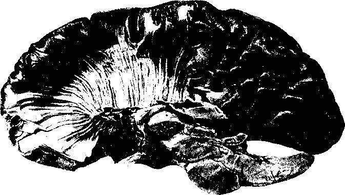 Илл. 21а. Фронтальный срез мозга. Видны сложнорасположенные изгибы