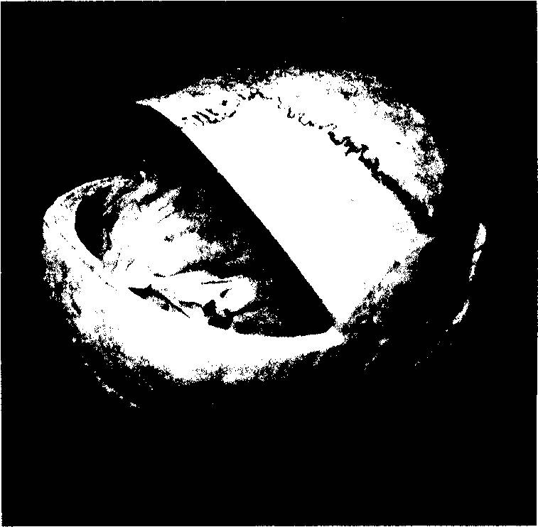 Сама экстирпация, или топэктомия, делается следующим образом: заточенная десертная ложка подводится в разделяющую извилины борозду (в данном случае это «роландова» – центральная борозда), и затем начинается медленное, кусочково-ленточное срезание участков коры головного мозга кпереди и вниз, по возможности следующее неравнотолстости извилин, т.е. волнообразное.