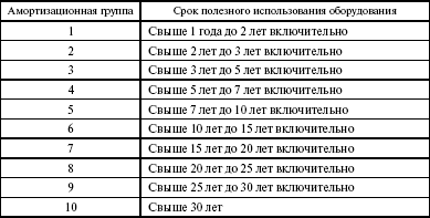 2.5.3. Согласно этому постановлению все основные фонды сведены в десять амортизационных групп, для каждой из которых установлены сроки службы. Полный перечень отнесенного к амортизационным группам оборудования приведен в указанном постановлении; состав амортизационных групп представлен в табл. 1.2.