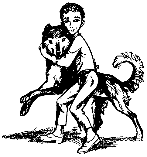 В это мгновение собака прыгнула сверху на Самвела. Костя вскрикнул и зажмурился от ужаса… А когда открыл глаза, то увидел, что огромный серый волкодав весело виляет хвостом, а Самвел крепко обнимает его за шею.
