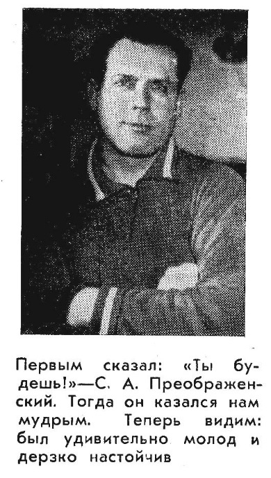 В тридцать лет – именно тогда, когда вроде бы все у него определилось – Преображенский принимает неожиданное для всех решение – переходит на тренерскую работу. Не помогли ни уговоры, ни увещевания. Смириться с выходкой сына родители не могли долго, они считали его решение роковой ошибкой. И лишь лет шесть спустя, когда их Сергей стал лучшим специалистом в своей области, когда его ученики один за другим начали выигрывать крупнейшие международные соревнования, родители наконец одобрили его выбор.