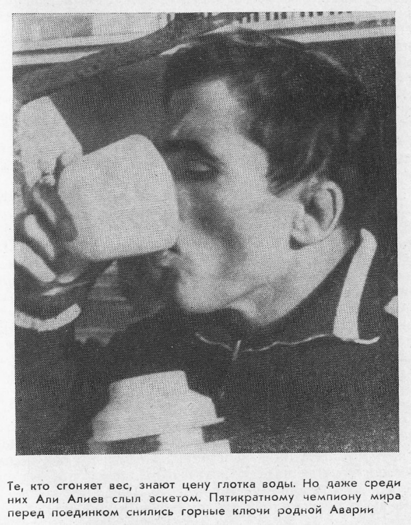 Для Александра Медведя финал сложился не слаще. Неожиданно на первых минутах он проиграл два очка дебютанту турнира турку Айику. Саша выложился до предела, но все же сумел сквитать очки. Таким образом, в сборной по вольной борьбе лишь двое сумели взойти на высшую ступеньку олимпийского пьедестала почета. Завоевав на первенствах мира три, а на последнем – в Софии – четыре высшие награды, мы не были довольны результатами выступлений нашей команды. Особенно переживали за Али Алиева. За глаза мы называли его Кремень. Упорный, умеющий терпеть, он изнурял себя сгонкой веса. На мировых первенствах, он становится чемпионом пять раз, а вот на олимпиадах его всякий раз подкарауливала неудача. Осечка в Риме, оплошность в Токио, затем неудача в Мехико оставили его без самой ценной награды спорта.