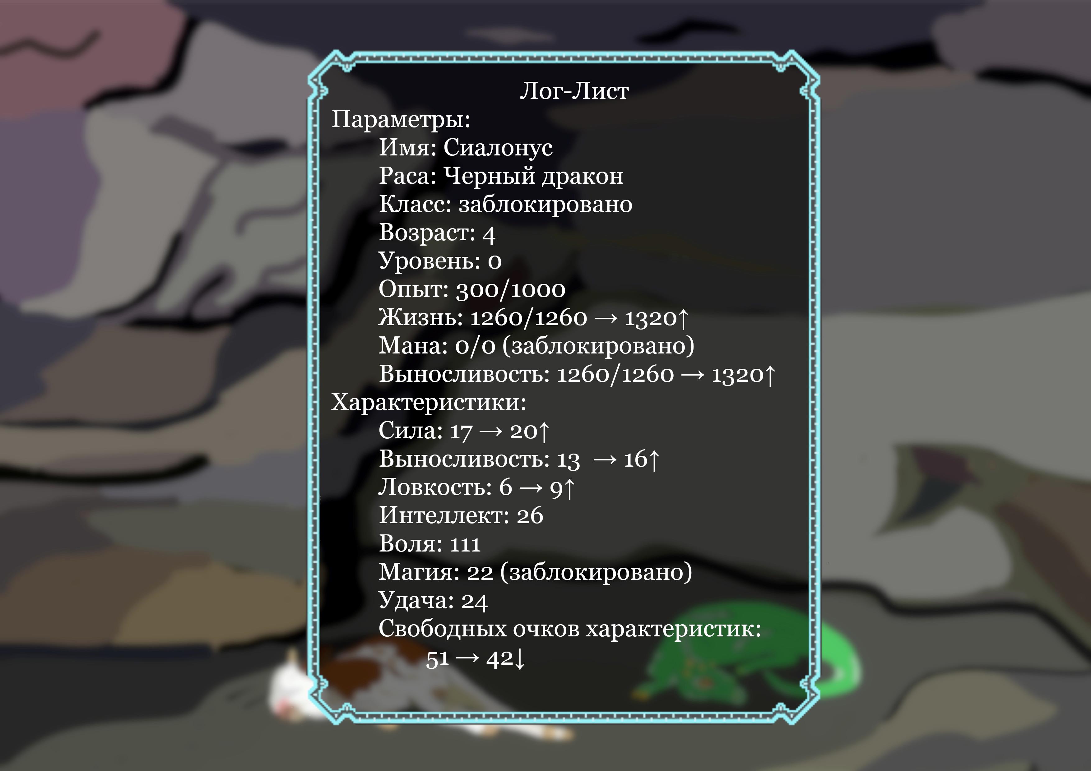 – Хм, – она фыркнула, отвернулась и вылезла из кладки. – Распределяй очки и иди кушать. Мама сказала, чтобы ты восемь очков отправил в силу, четыре в выносливость и три в ловкость, а то ходить начнёшь, но спотыкаться будешь. Хотя бы ползать начни уже!