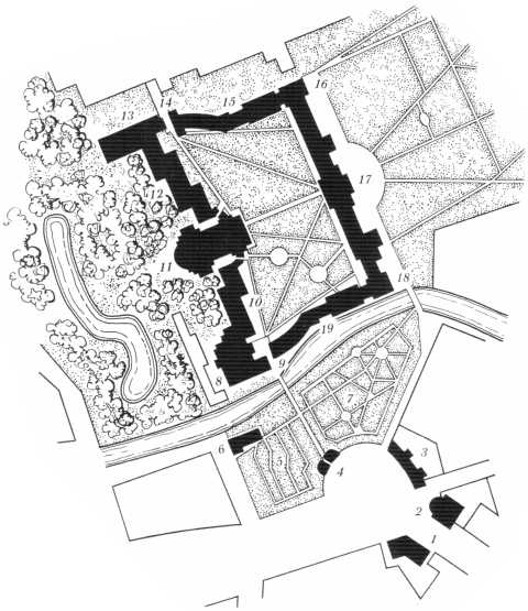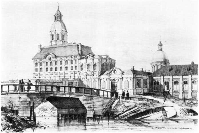 С 1740-х годов, с деятельности П.-А. Трезини, который развил и определил во многом направление и характер дальнейшего строительства, работы, завершающие начатый на заре века ансамбль, уже не прекращаются, хотя иногда из-за нехватки денег идут в более замедленном темпе. Возводятся здания, предусмотренные старым генеральным планом,– боковые корпуса «каменных поземных в цирконференциях строений». Возводятся и новые, спроектированные или откорректированные в ходе строительства.