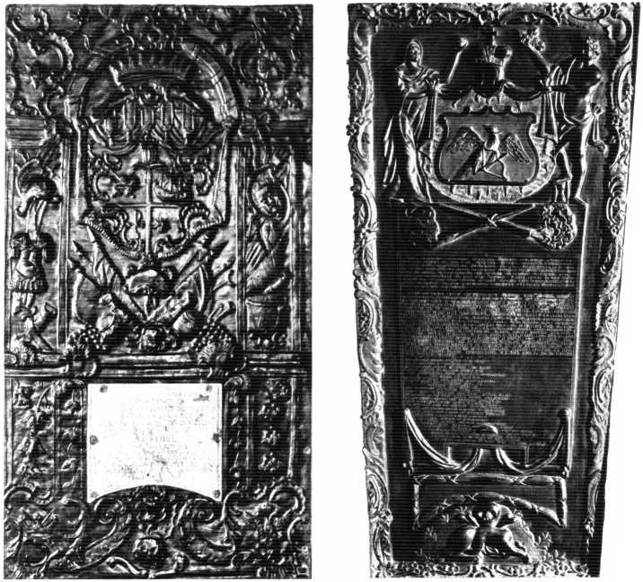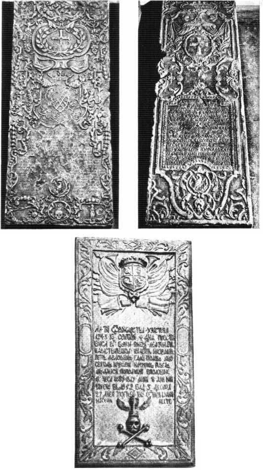 84. Мастер И. X. Праузенбергер. Надгробия А. К. Воронцовой (слева) и М. К. Скавронского (справа). 1770-е гг.