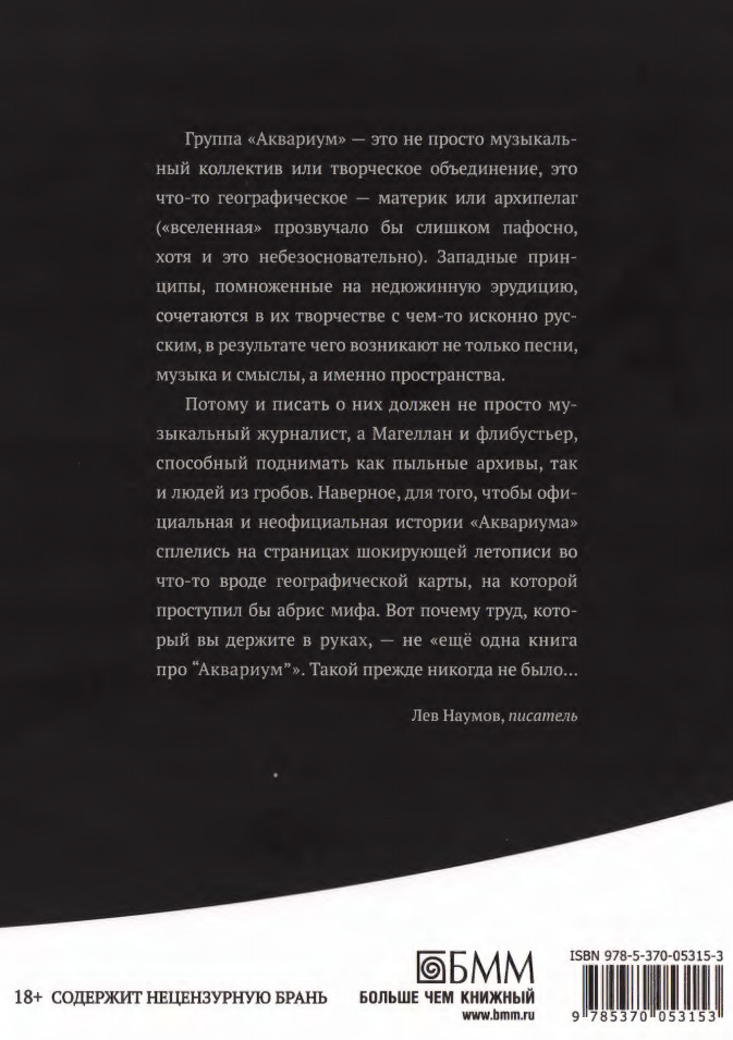 Подавляющее большинство материалов книги основано на воспоминаниях людей, находившихся внутри «Аквариума» или рядом с ним на протяжении многих лет. Музыканты и звукорежиссёры, фотохудожники и администраторы, журналисты и архивариусы в течение долгого времени делились с автором редкими записями и фотографиями, байками и эмоциями. Они помогли сформулировать это не всегда сбалансированное и порой противоречивое историческое полотно. Спасибо им за этот незабываемый экспириенс.