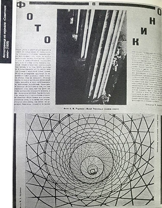 А. Родченко за последний год работал и продолжает работать по фото, устанавливая новые съемочные углы и точки зрения. Фотоработы печатались в журналах «Советское кино», «Советское фото» и «Новый ЛЕФ».
