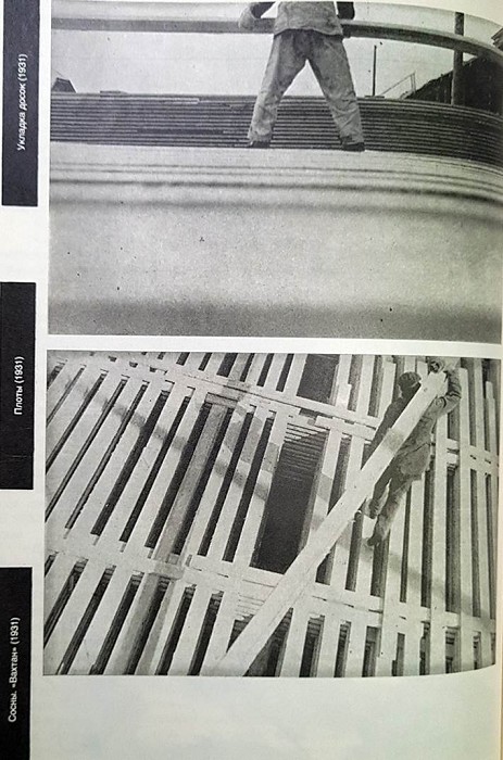 Родченко неоднократно ездил от Мясницких ворот и в сторону Сокольников. Он не снимал архитектуру вокзалов, находившихся на площади. Его интересовало новое. Новое – это был, например, гараж, построенный К. Мельниковым неподалеку от Комсомольской площади на Новорязанской улице. Он еще только заполнялся английскими автобусами «Лейланд» и грузовиками. И потому внутри было свободно, можно было показать все детали перекрытия этого полукруглого в плане здания.