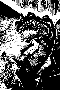 – Марсианские надписи говорят об этом звере. Там даны его математические символы и очертания его фигуры. Они говорят, что его можно убить, лишь оторвав взрывом голову. Ранним марсианам, наверное, приходилось устанавливать большие пушки для этого.