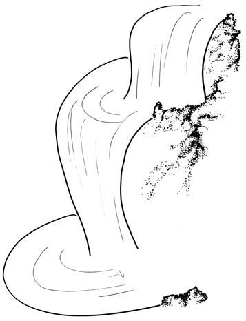 Идти пришлось недолго. Примерно через полчаса они подошли к водопаду. Огибая уступ, вода с шумом падала в узкую неглубокую расщелину, весь противоположный берег которой был перекрыт застывшим лавовым потоком. Казалось, низкий каменный свод нехотя перевалился через русло. Река, несущая клочья желтовато-белой пены, ускоряя своё течение, скрывалась под ним. С трёх сторон над ней высились неприступные горы.